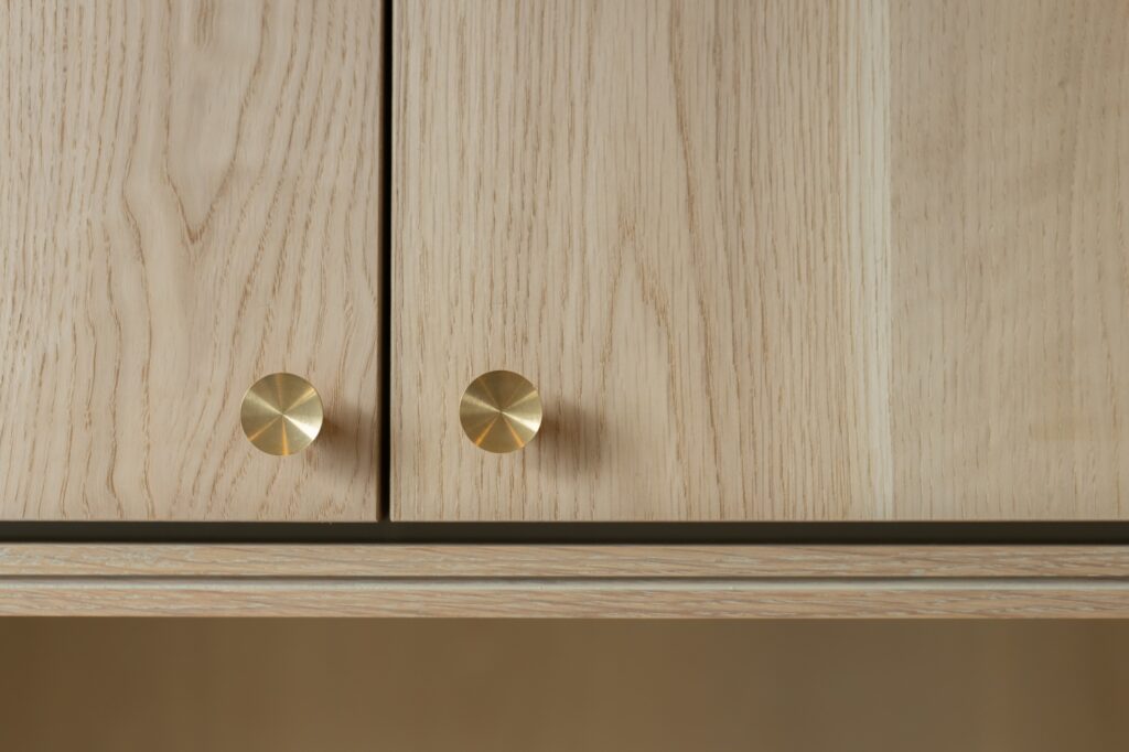 Lagomでは扉や引き出しの取っ手、床見切り、タオル掛け、ペーパーホルダーなどに真鍮製の金物を使用しています。